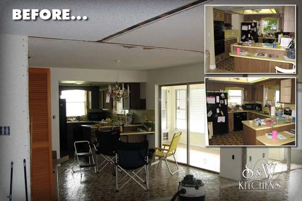 The soffits were removed, along with the sink and toilet in laundry room, and a hall closet that became a new pantry and bar area. The customers were very involved in every aspect of the renovation. They did their own construction or subcontracted it to workers they had used in the rest of the house.